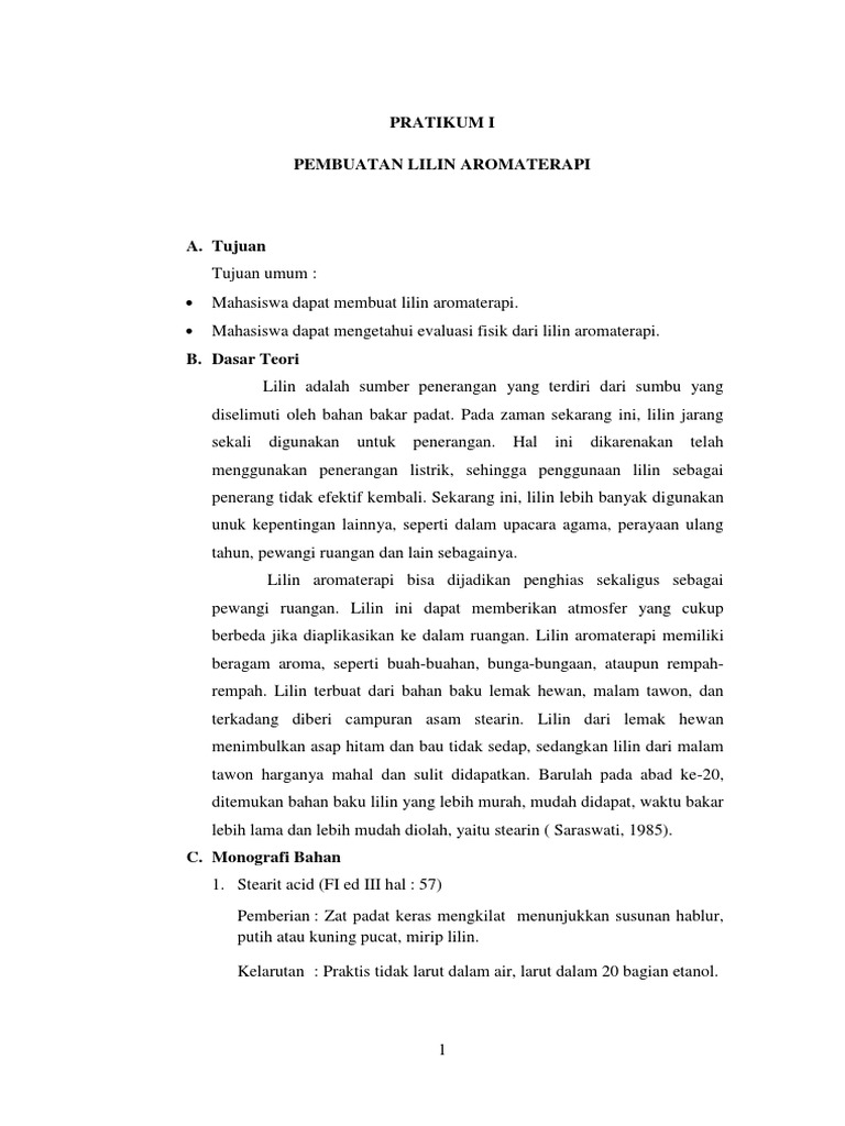 Laporan Praktikum Pembuatan Lilin Aroma Terapi from imgv2-2-f.scribdassets.com Laporan praktikum pembuatan lilin aromaterapi. Maybe you would like to learn more about one of these? We did not find results for: Check spelling or type a new query.