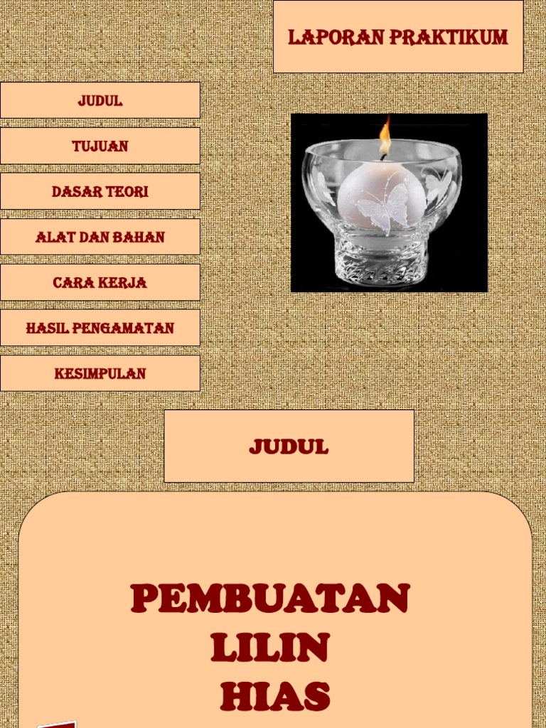 Maybe you would like to learn more about one of these? Check spelling or type a new query. Laporan praktikum pembuatan lilin aromaterapi. We did not find results for: